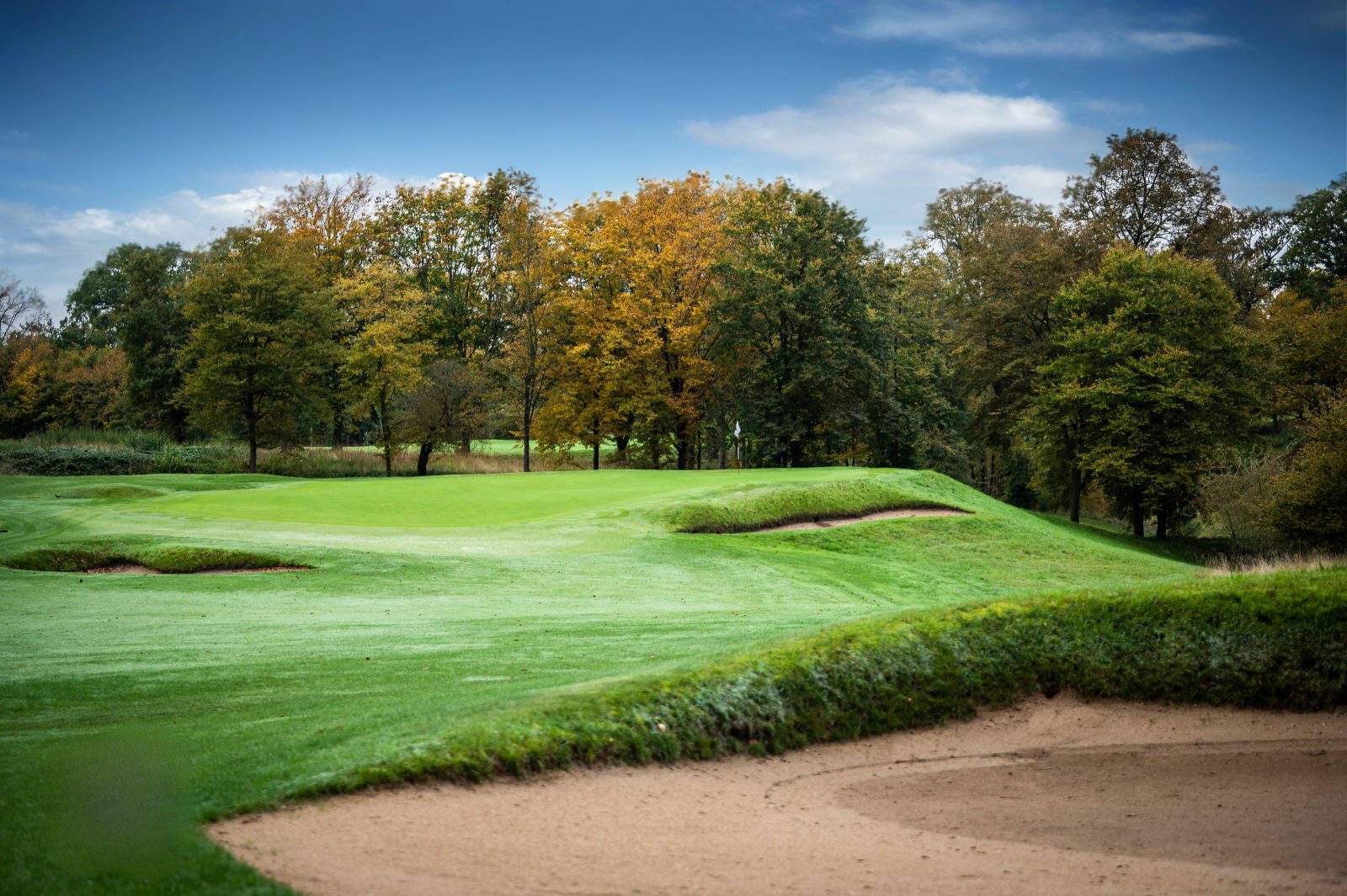 Chantilly, one of the early designs by British architect Tom Simpson, was introduced in 1909 with twenty-seven holes. In 1990, Donald Steel expanded it by an additional nine holes, necessitating the replacement of three of Simpson's original finishing holes. The club, often likened to the "St. Andrews of France," maintains its charming atmosphere, featuring a timeless, pavilion-style clubhouse distinct from modern structures.